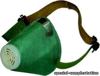 Состоит из фильтрующего слоя, наружного слоя из пенополиуретана или нетканого материала, внутреннего слоя из полиэтиленовой пленки, клапанов вдоха и выдоха, оголовья и носового зажима.